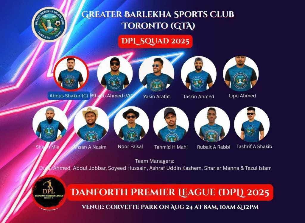 Barlekha Sports Club Toronto (BSCT) is a non-profit, community-driven sports organization established on July 4, 2025. Our club proudly represents the vibrant community of Barlekha Upazila, Moulvibazar District, Bangladesh, now living in Toronto and across the Greater Toronto Area.